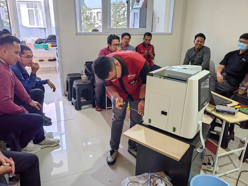 Taking the oppotunity of the overseas service center establishment, Mr. Joe, the manager of the international service department, and Mr. Rayson, the engineer of global technical support department, went from the Shenzhen headquarters to Indonesia, to communicated with customers face-to-face. Dymind service team insists on value-chain sharing , provides customers with better products and services, to be the world’s leading supplier of intergrated instruments.